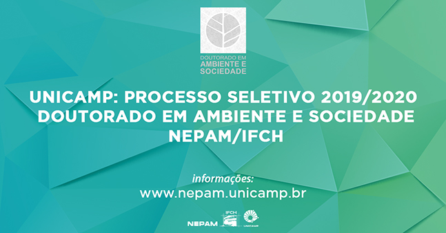 O Programa de Pós-Graduação em Ambiente e Sociedade (PPGAS) do Núcleo de Estudos e Pesquisas Ambientais (Nepam) da Universidade Estadual de Campinas (Unicamp) divulgou edital para ingresso de alunos regulares no curso de doutorado, com início no primeiro semestre de 2020.