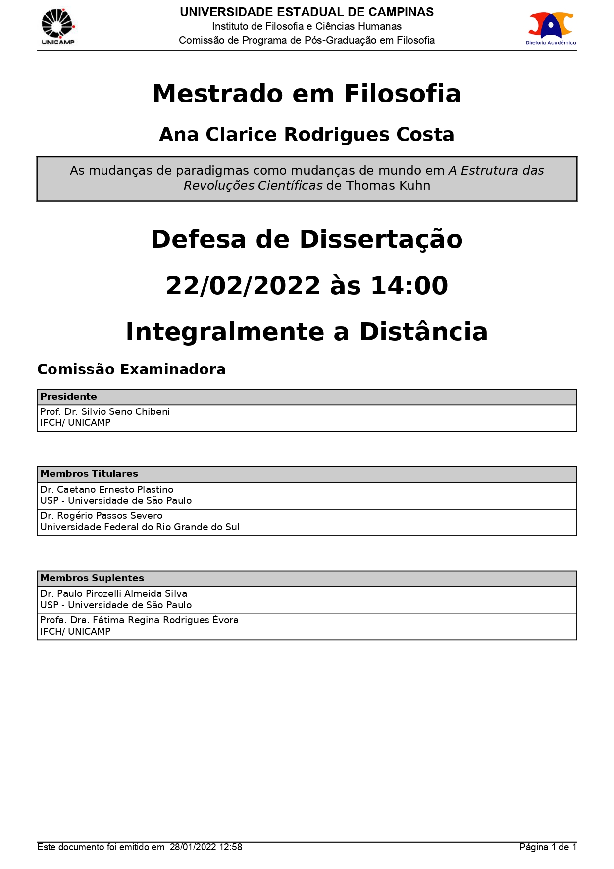 Defesa de Mestrado de Ana Clarice Rodrigues Costa