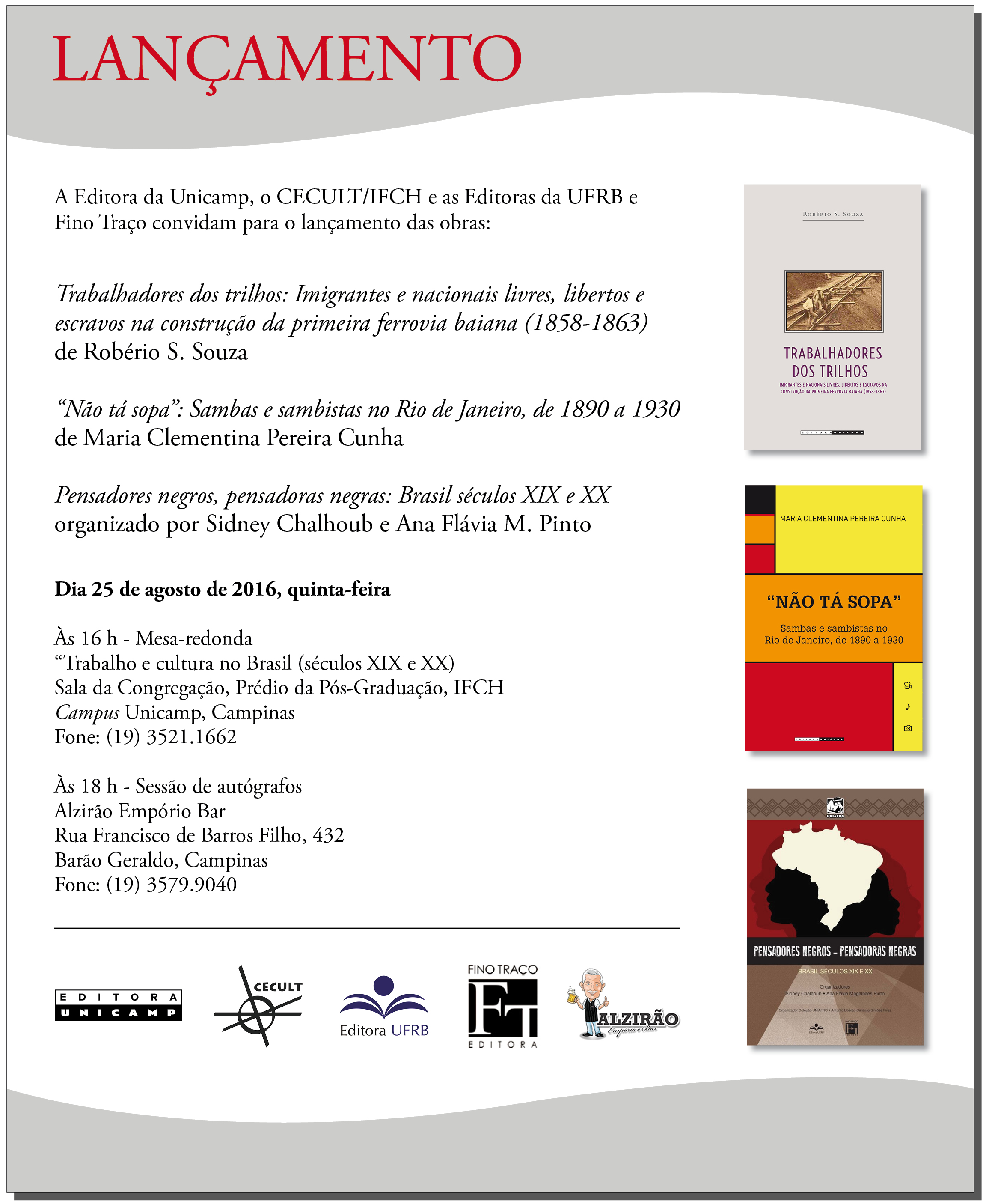 Lançamento de livro de Robério S. Souza, Maria Clementina Pereira Cunha, Sidney Chalhoub e Ana Flávia M. Pinto