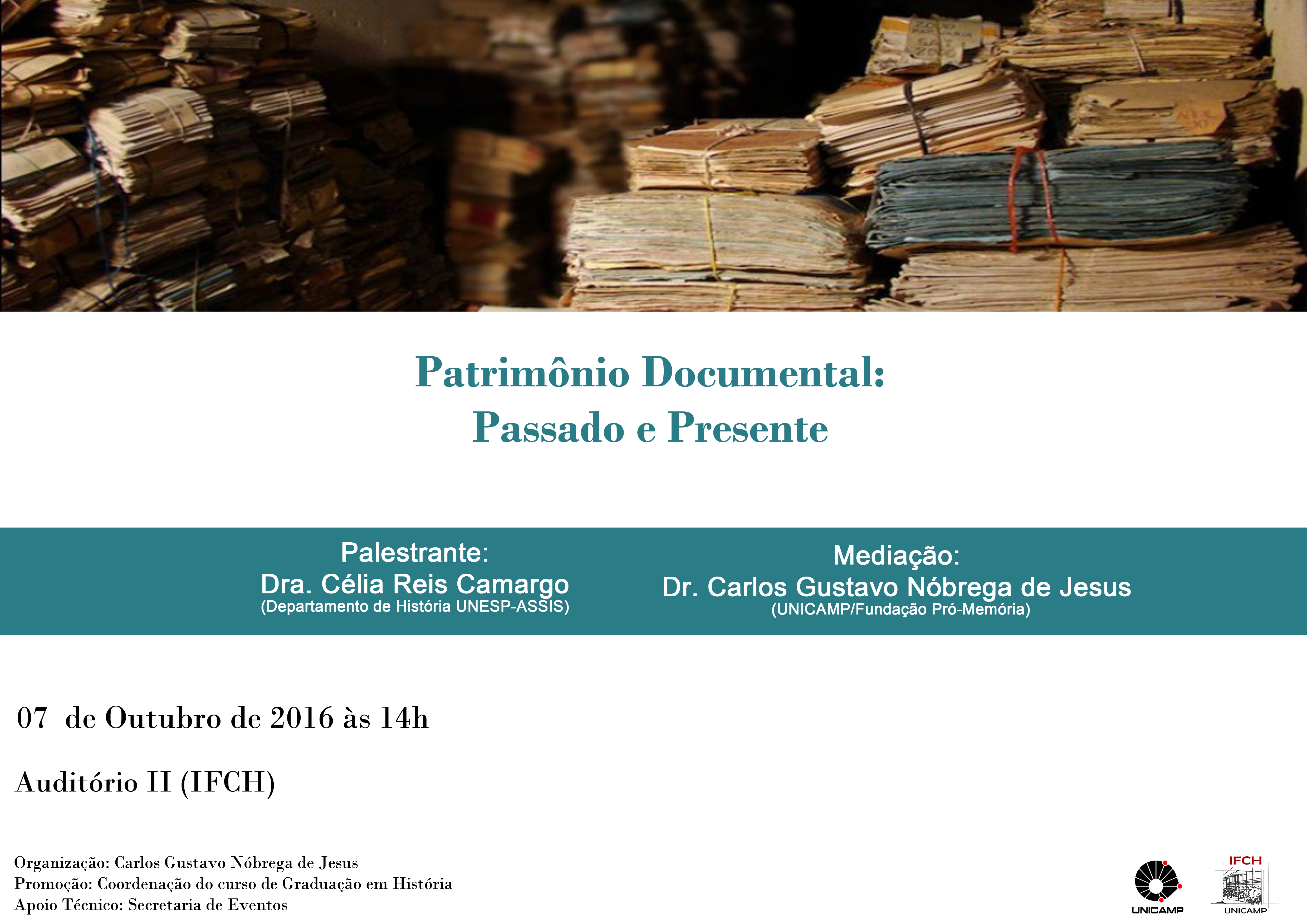 Palestrante: Dra. Célia Reis Camargo (Departamento de História UNESP-ASSIS)Mediação: Dr. Carlos Gustavo Nóbrega de Jesus (UNICAMP/Fundação Pró-Memória)