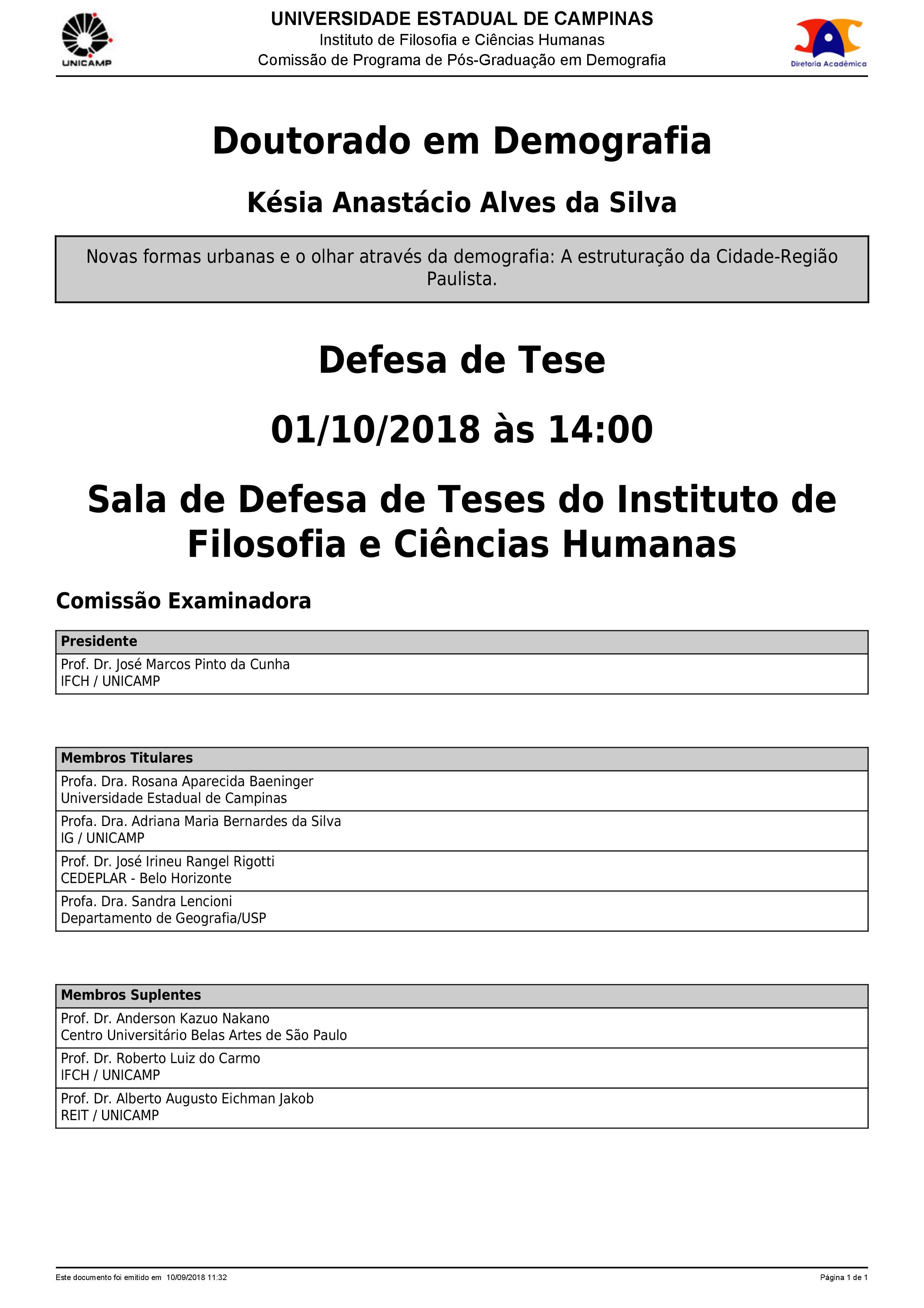 Defesa de Tese31/05/2019 às 14:00Sala da Congregação do Instituto de Filosofia e Ciên cias Humanas