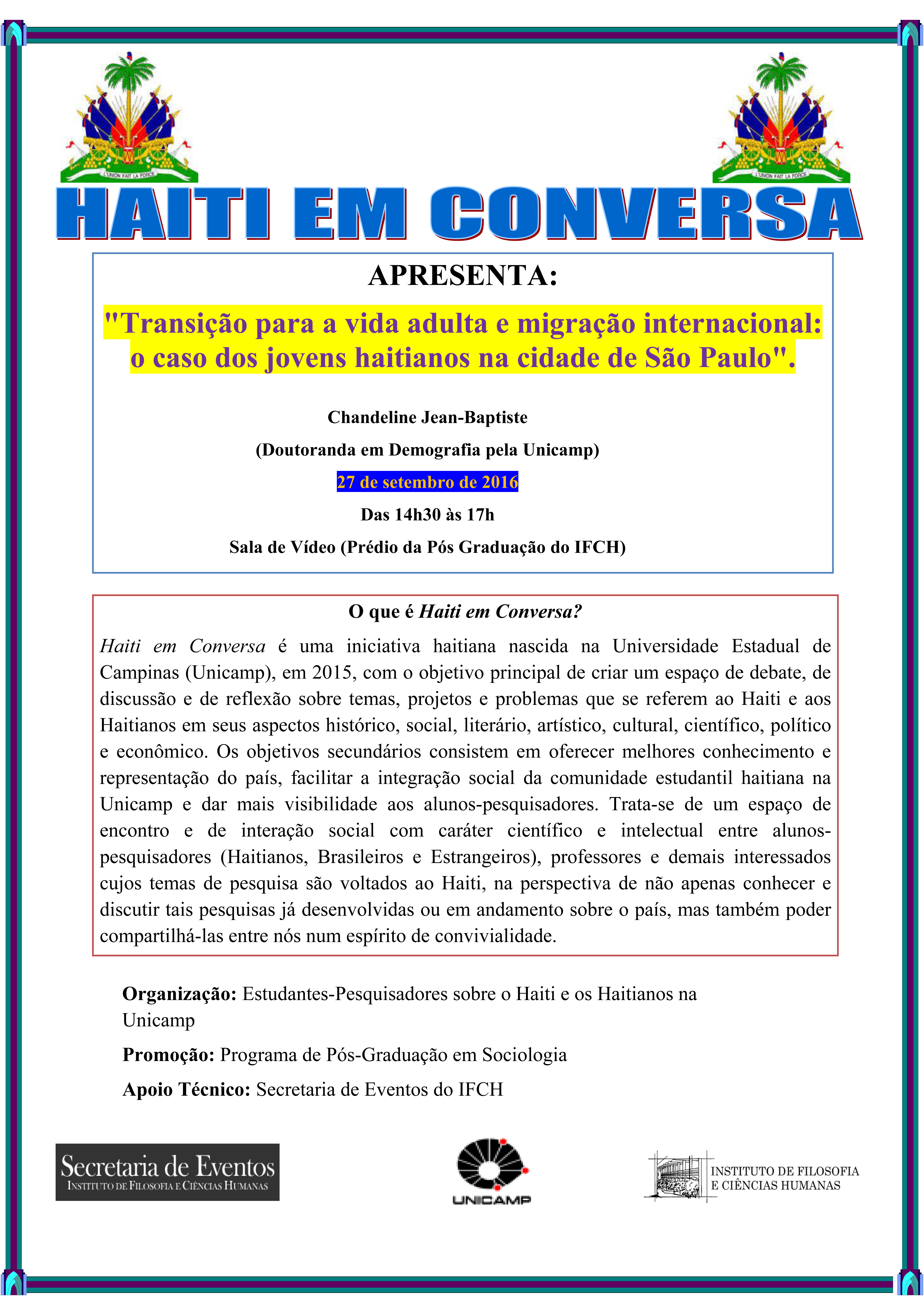 Haiti em Conversa - "Transição para a vida adulta e migração internacional: o caso dos jovens haitianos na cidade de São Paulo"