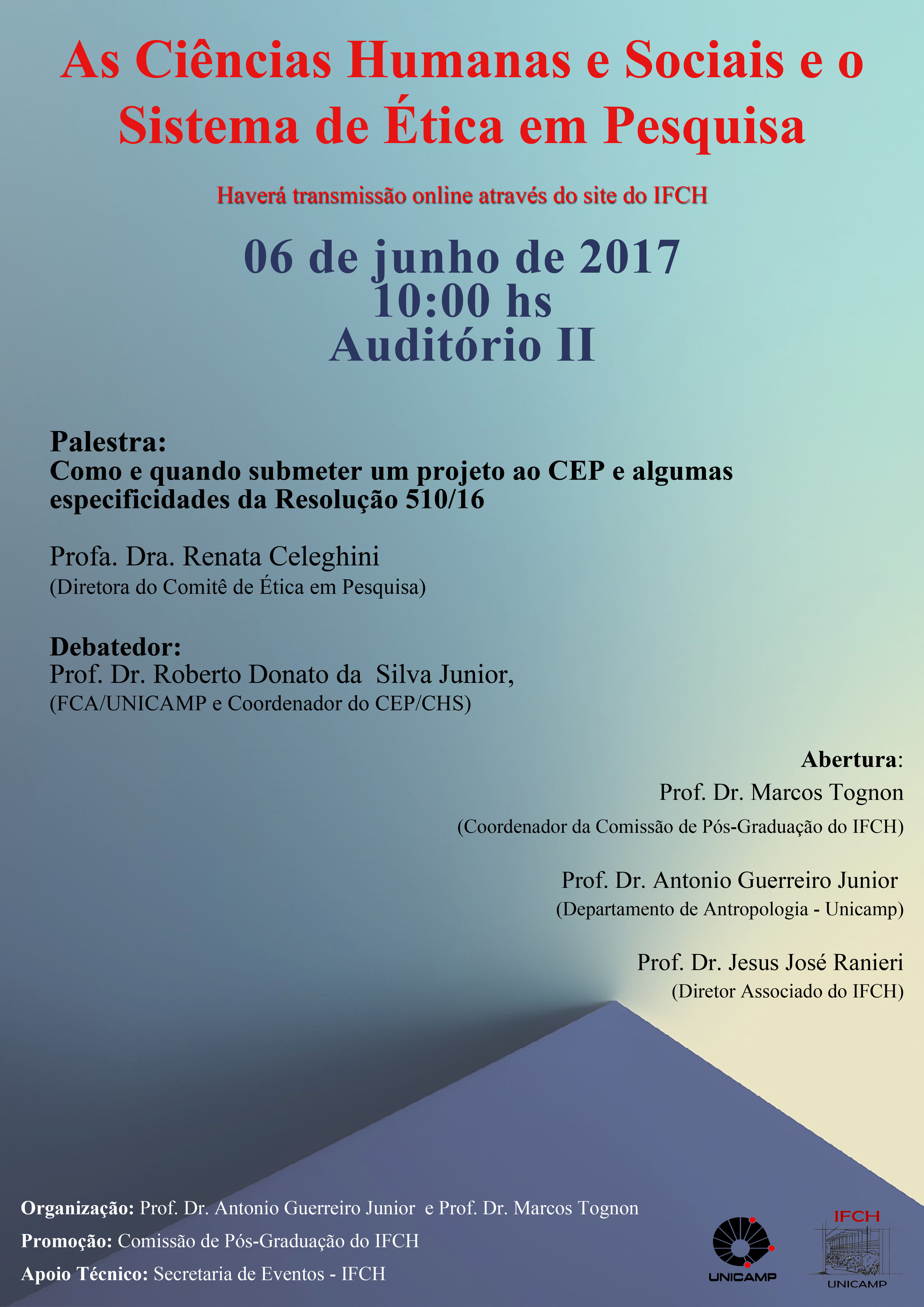 Debatedor:Prof. Dr. Roberto Donato da Silva Junior, (FCA/UNICAMP e Coordenador do CEP/CHS)