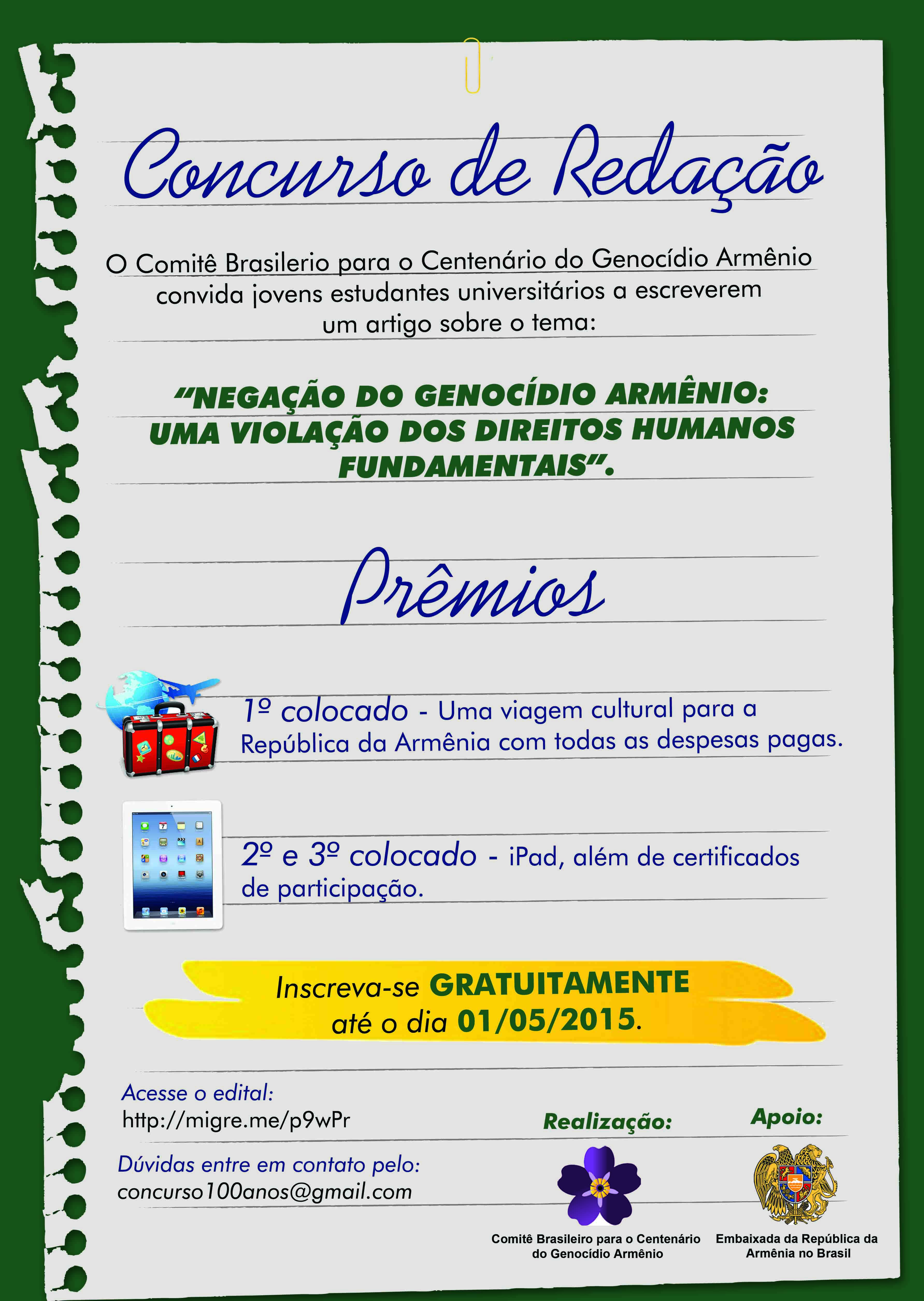 O Comitê Brasileiro para o centenário do genocídio armênio convida jovens estudantes universitários a escreverem um artigo sobre o tema: