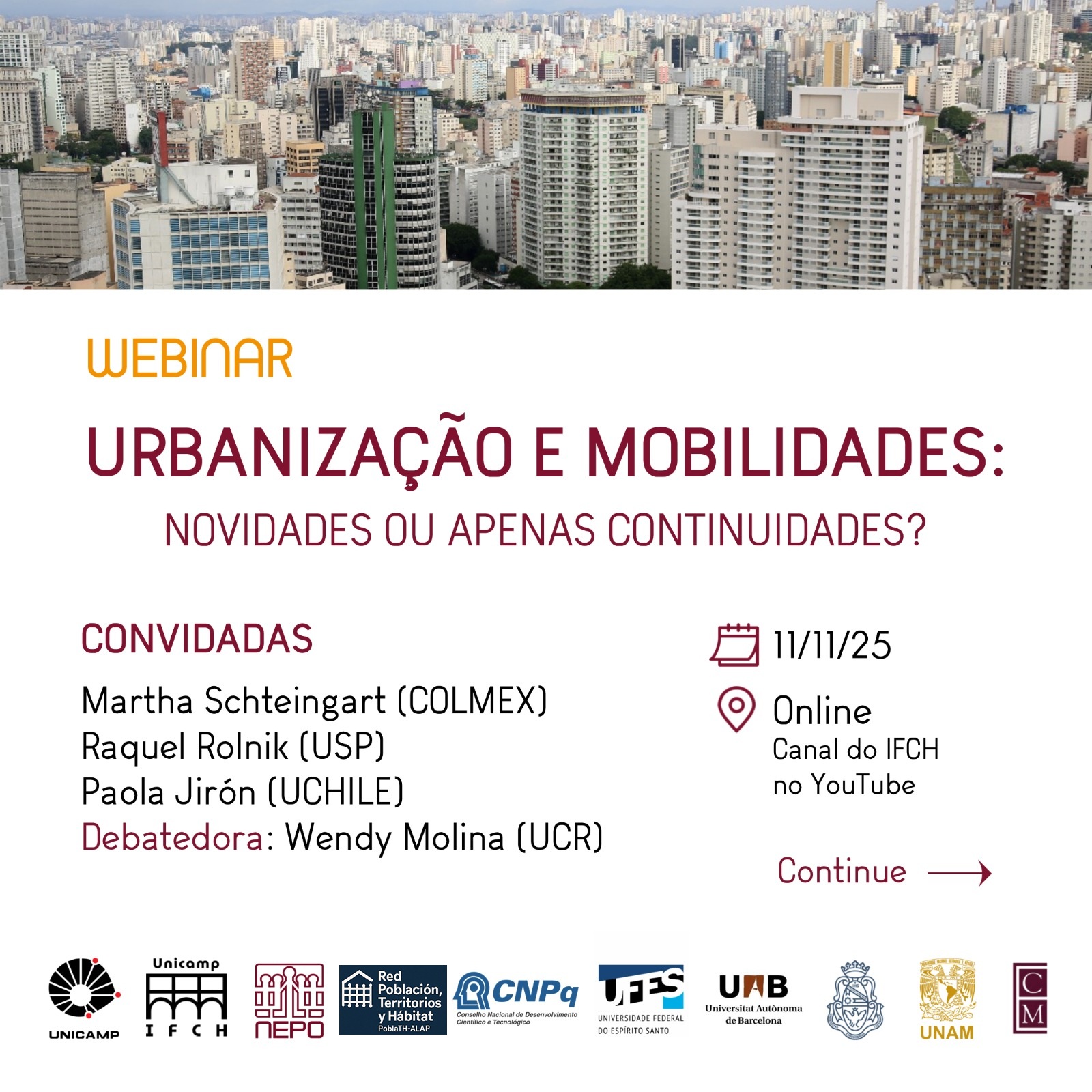 Webinar - Urbanização e mobilidades: novidades ou apenas continuidades?