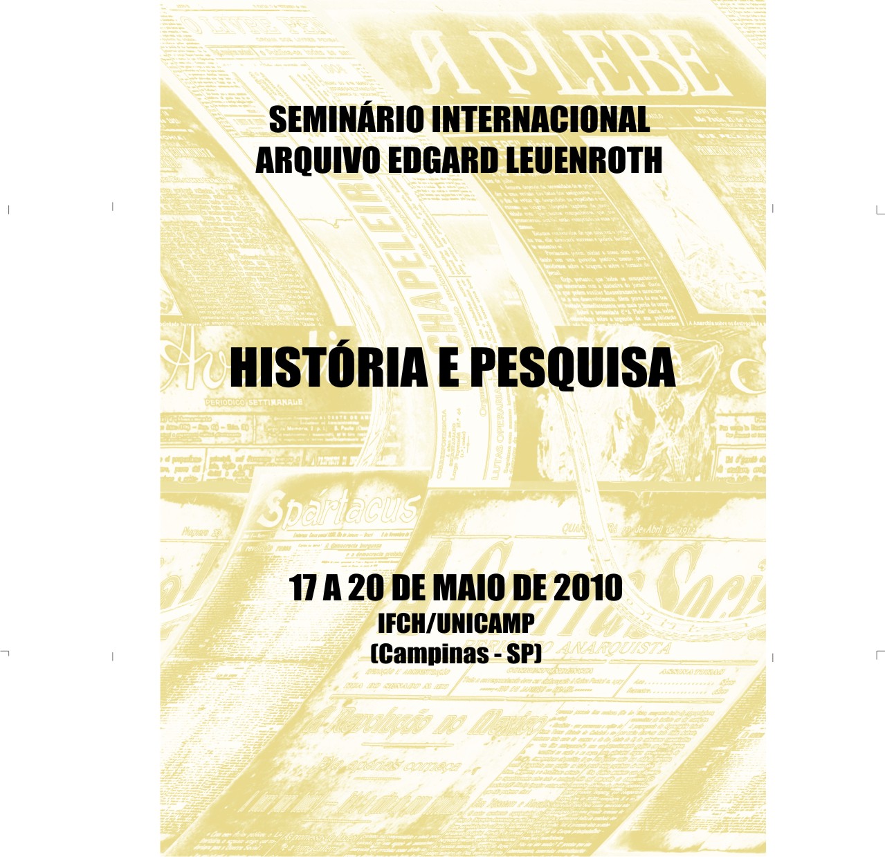 17 a 20 de maio de 2010 - Auditórios do IFCH - SEMINÁRIO INTERNACIONAL