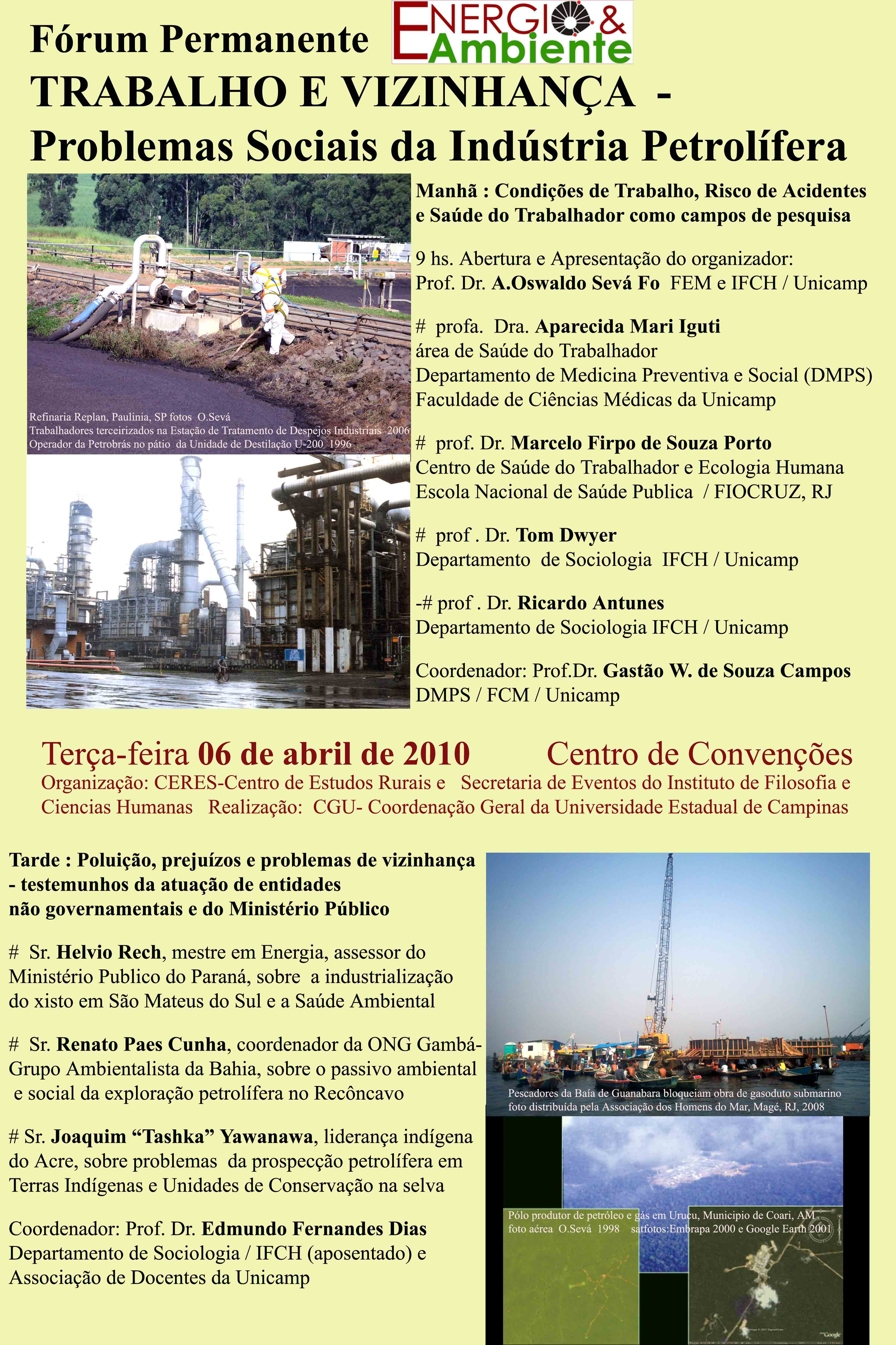 Promoção e Organização: Centro de Estudos Rurais CERES/IFCH -Unicamp e Secretaria de Eventos do IFCH. Prof. Dr. Oswaldo Sevá - FEM/IFCH - Unicamp Realização: CGU - Coordenação Geral da Universidade Estadual de Campinas.