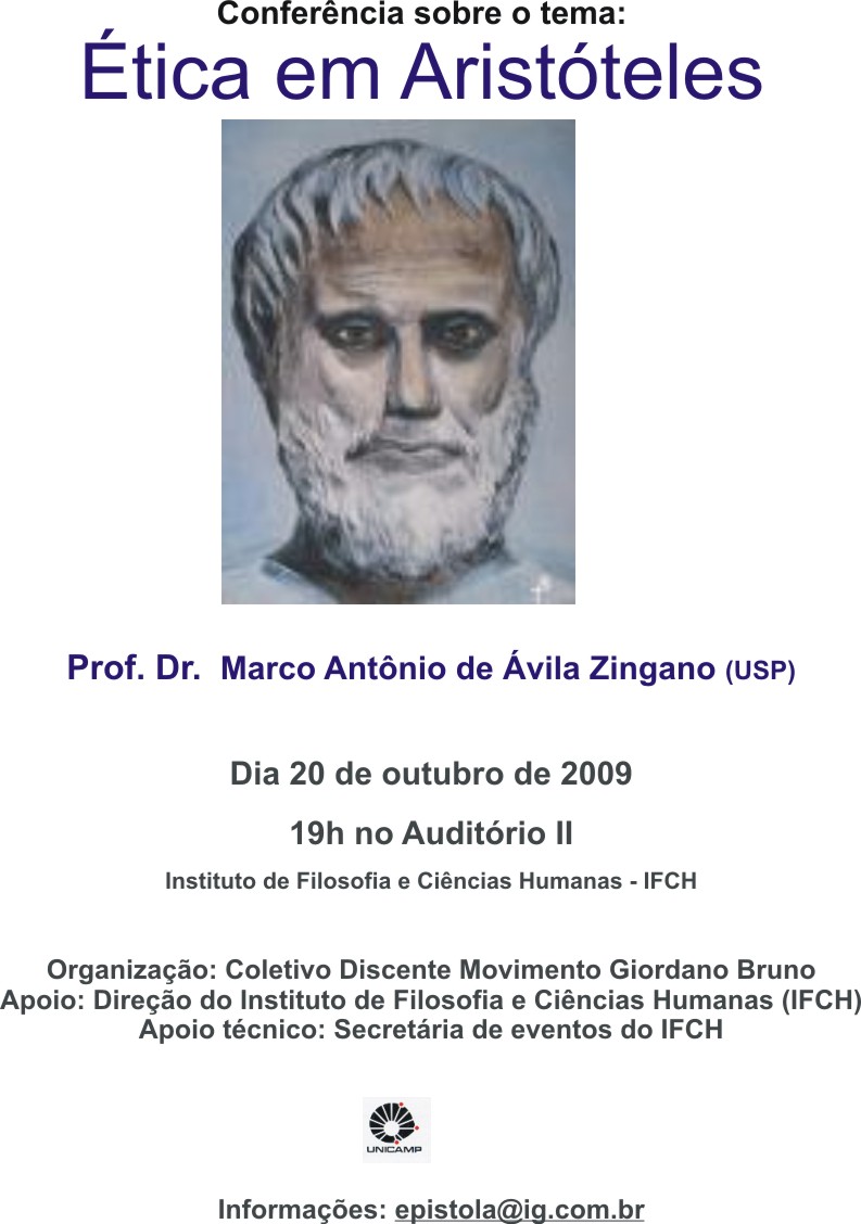 20/10/09 - 19h00 - Conferência sobre o tema: Ética em Aristóteles