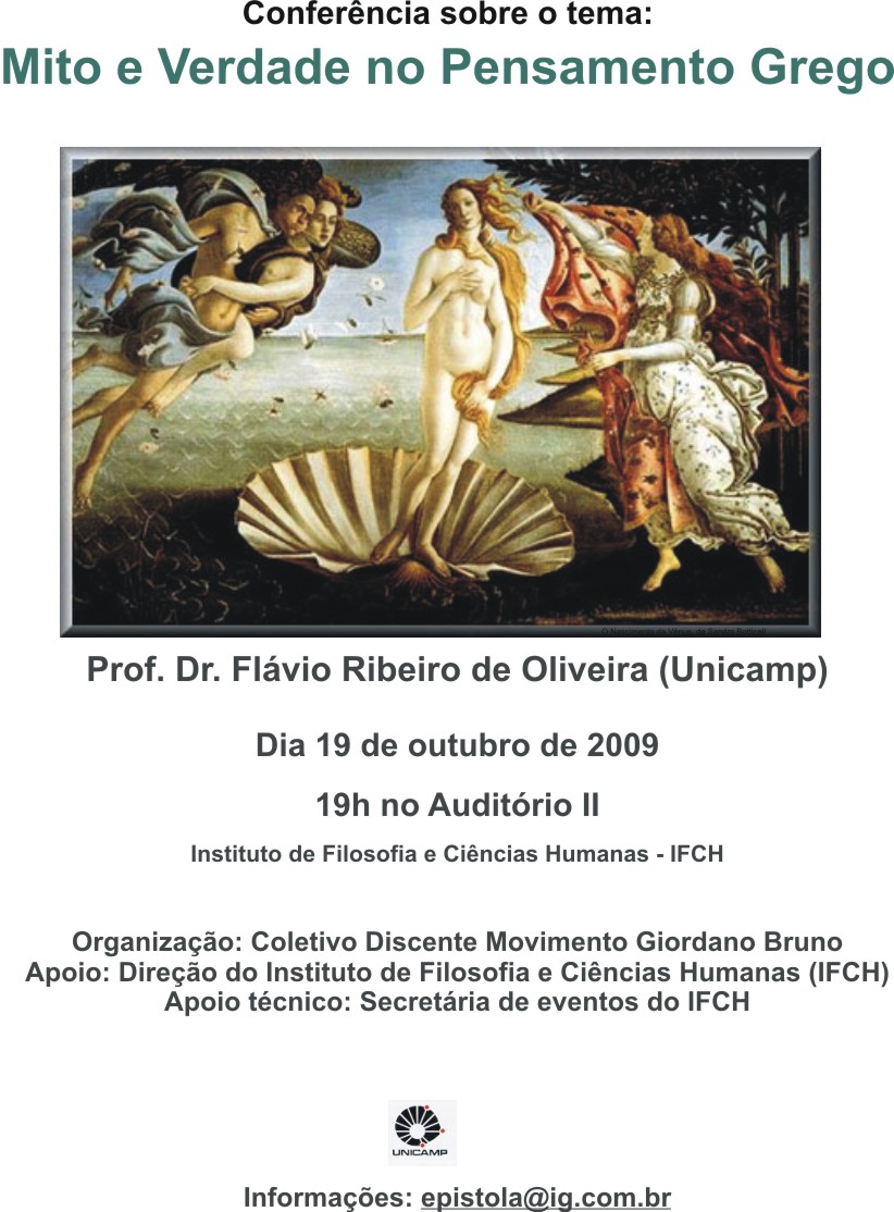 Conferência sobre o tema: Mito e Verdade no Pensamento Grego O Nascimento da Vênus, de Sandro Botticelli Prof. Dr.