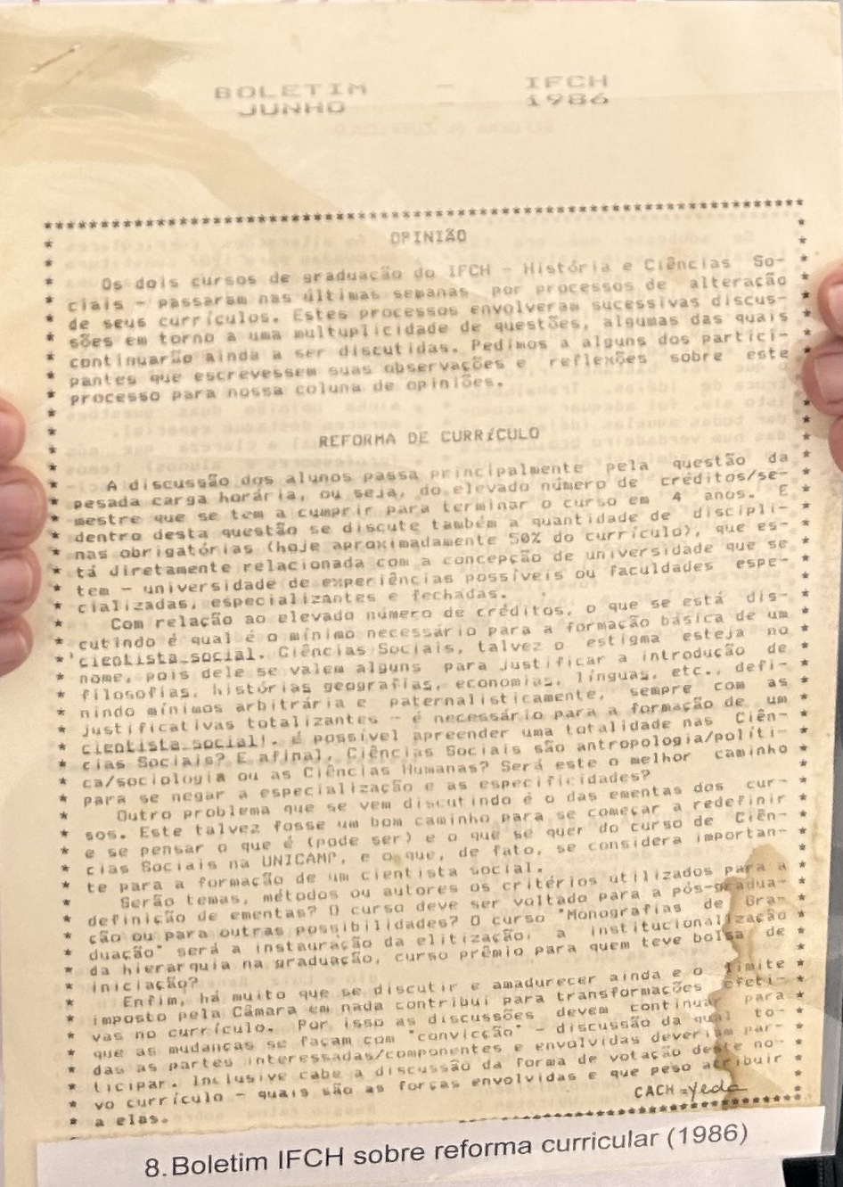Para simbolizar essa nova fase, escolhemos no cabeçalho uma imagem da primeira versão do Boletim, que circulava em formato impresso em meados da década de 1980. A edição de junho de 1986 que ilustra o Boletim esteve recentemente em destaque durante a atividade História do Centro Acadêmico de Ciências Humanas e sua luta no Movimento Estudantil, realizada no Unicamp de Portas Abertas (UPA), em 23 de agosto.