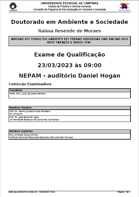A análise da configuração de arenas em torno do garimpo e dos povos indígenas, em particular das etnias Kayapó e Munduruku, e as disputas entre atores em múltiplos níveis de organização social (local, regional, nacional, internacional) é tema do exame de qualificação da pesquisadora Raíssa Resende de Moraes, dia 23 de março de 2023, às 9h00, no Auditório Daniel Hogan, do Nepam.
