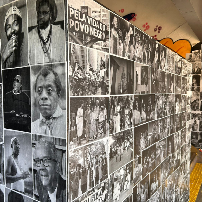 A resposta foi ampla: o movimento negro, centros acadêmicos, professores e direção organizaram um processo de revitalização que durou meses. Houve rodas de conversa, feijoada coletiva, capoeira, samba e baile. Enquanto isso, estudantes retiravam a tinta, imprimiam novas imagens e reconstruíam o mural. “A gente passou de abril a agosto retirando a tinta, reimprimindo imagens e reconstruindo o mural”, explicou Felipe. “Enquanto aconteciam as atividades, a gente estava lá colando os rostos das personalidades negras.” Hoje, o Mural Negro não apenas foi recuperado: segue em expansão, com novas colagens adicionadas continuamente na escadaria do prédio da Graduação do IFCH.