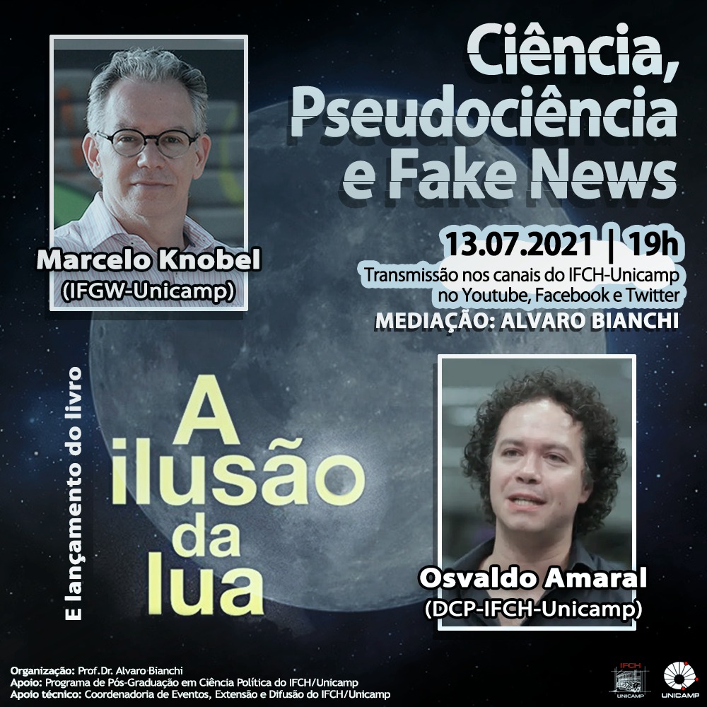 Os canais do IFCH Unicamp transmitirão a mesa Ciência, pseudo-ciência e fake news dia 13 de julho, às 19 horas, com a presença dos professores Marcelo Knobel (IFGW) e Oswaldo Amaral (IFCH). O evento contará com mediação do professor Alvaro Bianchi.